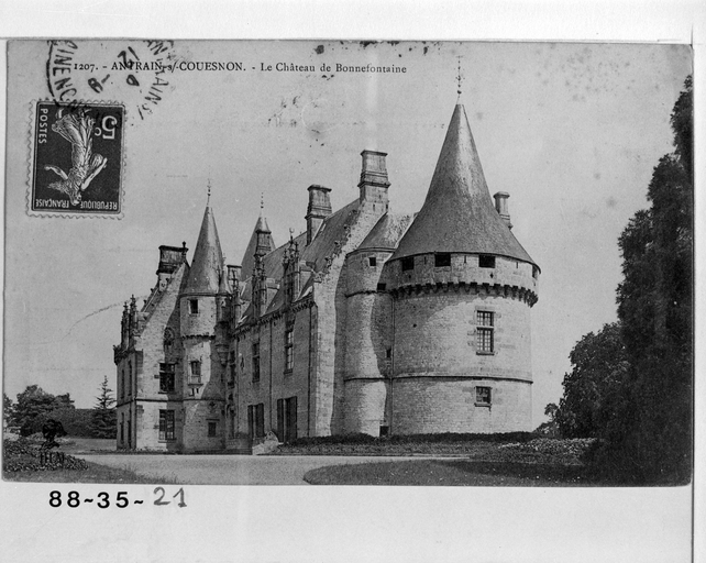 1207. Antrain-sur-Couesnon. Le Château du Bonnefontaine. Carte postale, [s. l. ; s. n. ; s. d.]. (A.D. Ille-et-Vilaine, 8 Fi).