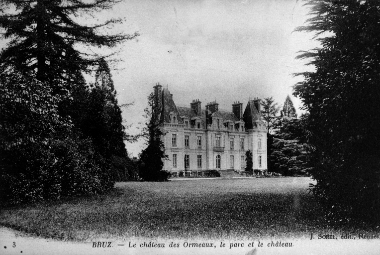 Fonds Lagrée - Carte postale ancienne - Bruz - Le Château des Ormeaux, le parc et le château.Immatriculation