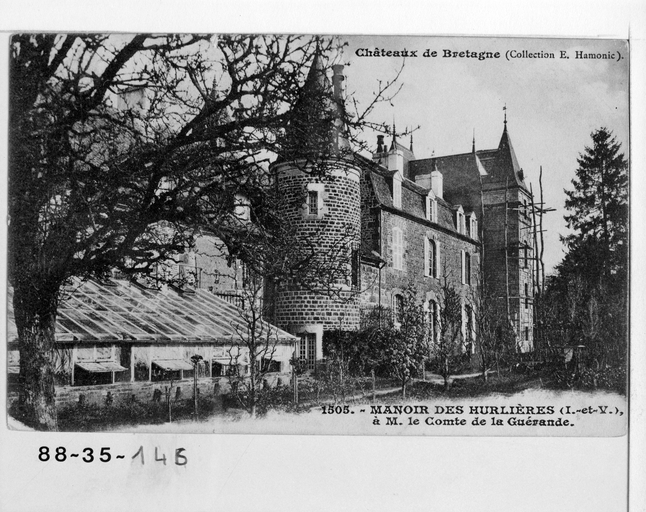 Fonds Lagrée - Carte postale ancienne - Collection E.Hamonic : 1505 - Manoir des Hurlières (I.-et-V.) - Façade postérieure.