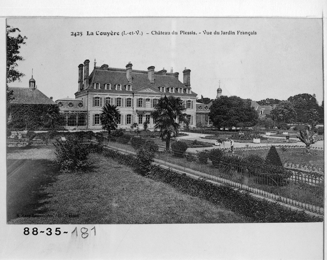Fonds Lagrée - Carte postale ancienne. 2425 - La Couyère (I.-et-V.) - Château du Plessis, vue du Jardin Français.Immatriculation
