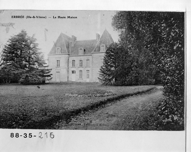 Erbrée (Ille-et-Vilaine) - La Haute Maison - Vue générale avec le parc. Carte postale ancienne. Fonds Lagrée.Immatriculation