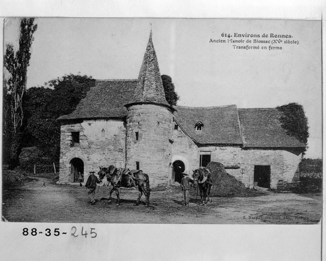 Fonds Lagrée - Carte postale ancienne : 614 - Environs de Rennes - Ancien Manoir de Blossac XVe s. transformé en ferme.Immatriculation