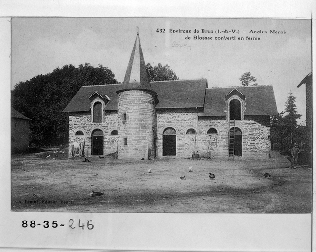 Fonds Lagrée - Carte postale ancienne : 432 - Environs de Bruz (I.-et-V.) - Ancien Manoir de Blossac converti en ferme.Immatriculation