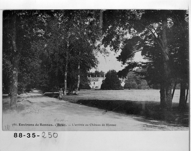 Fonds Lagrée - Carte postale ancienne : 786 - Environs de Rennes, Bruz - L'Entrée du Château de Blossac.Immatriculation
