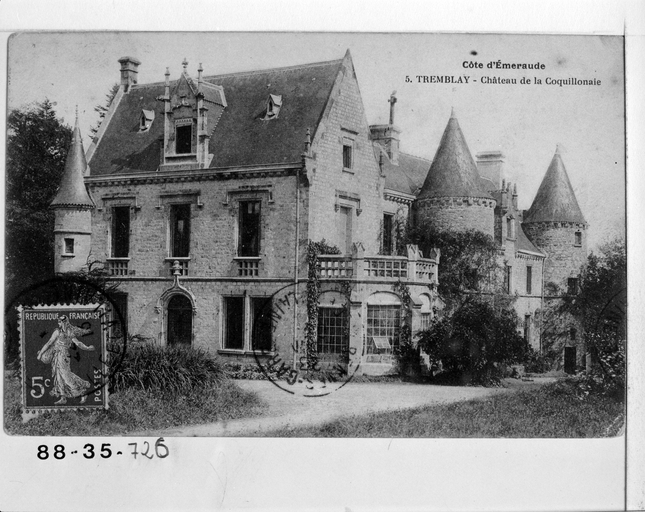 Le château de la Coquillonais (carte postale, limite 19e - 20e siècles)Immatriculation