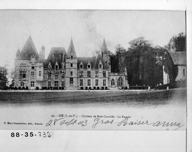 Fonds Lagrée - Carte postale ancienne - 95 - Izé (I.-et-V.) - Château de Bois Cornillé - La façade.Immatriculation