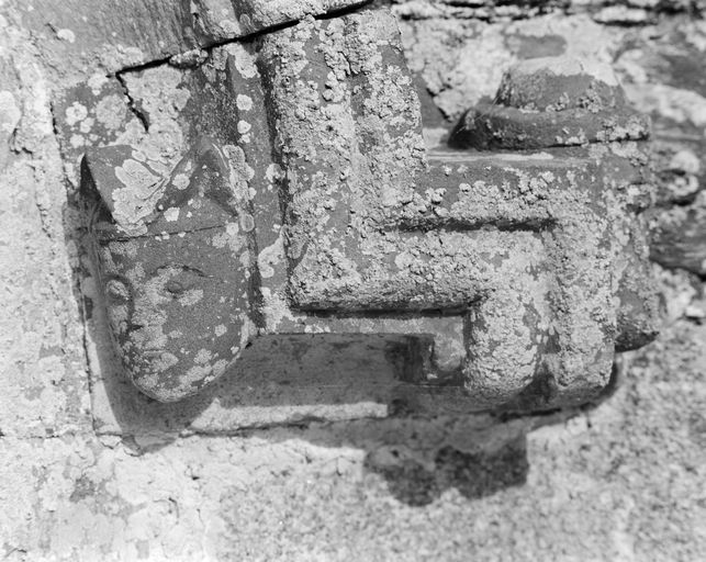 Manoir, logis, tour sud-ouest, crossette droite de la porte : portrait de femme portant un hennin à cornes (état en 1988)Immatriculation
