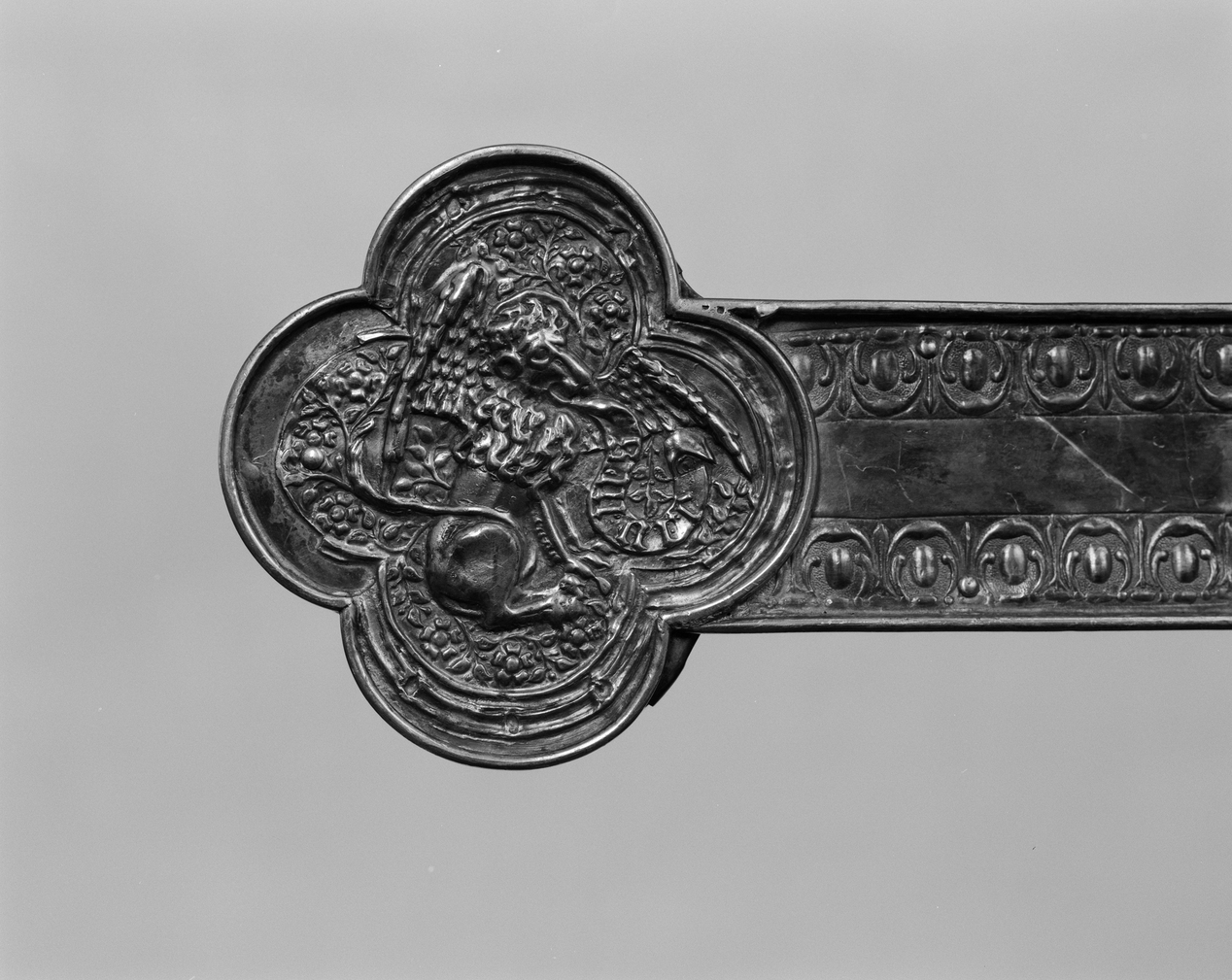 Croix de procession, face postérieure, médaillon de gauche : lion de saint MarcImmatriculation