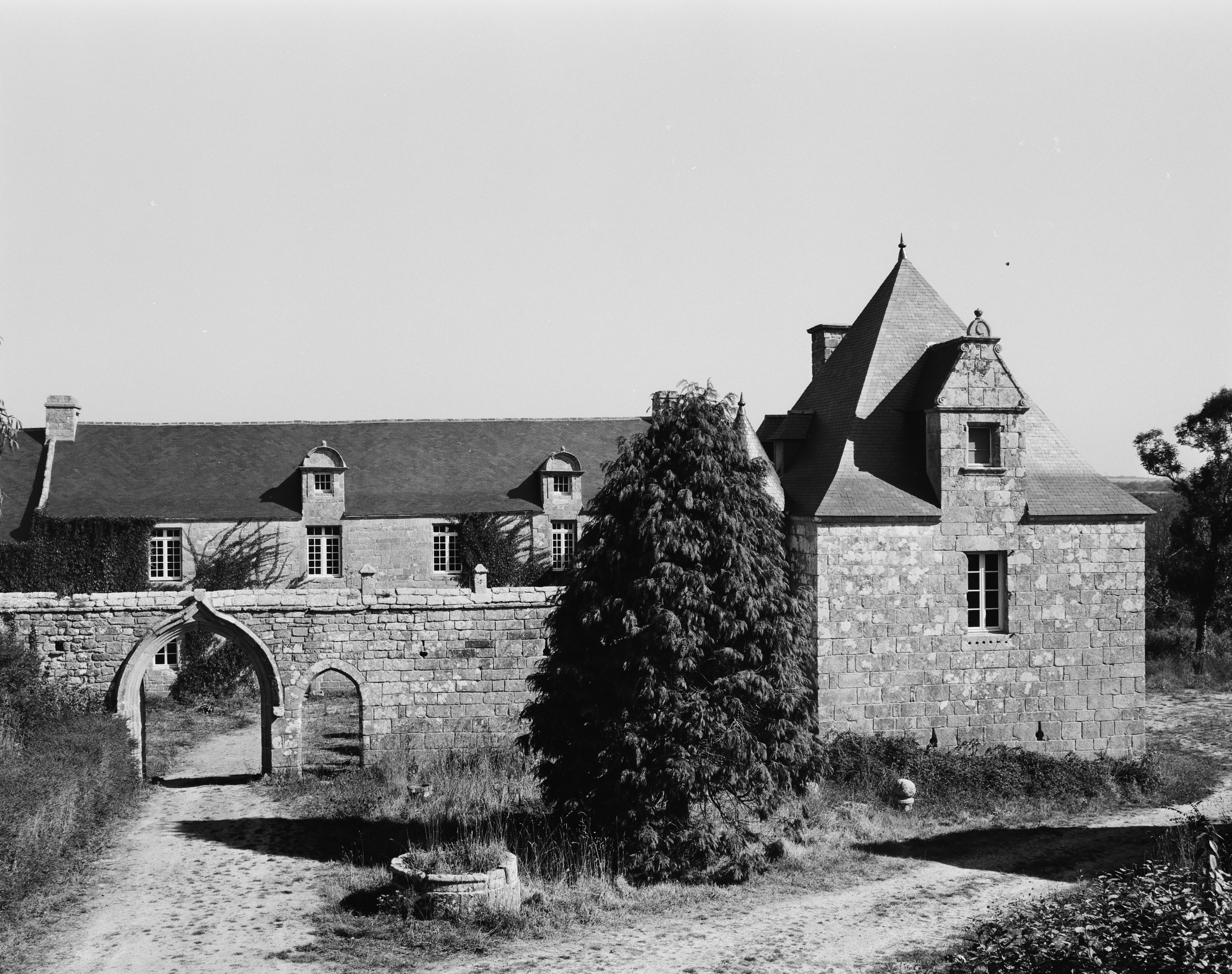 Vue générale sud prise de l'extérieur de la cour. Côté est. (1989)Immatriculation