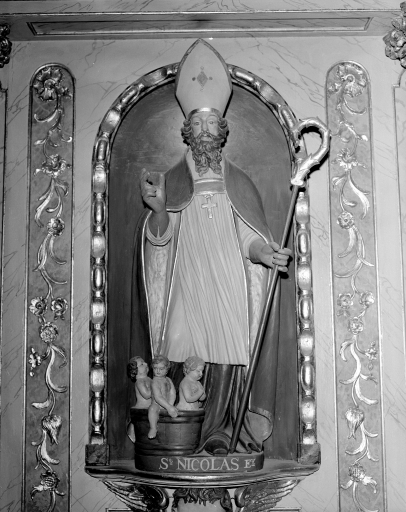 Statue Saint Nicolas : vue de face.Immatriculation