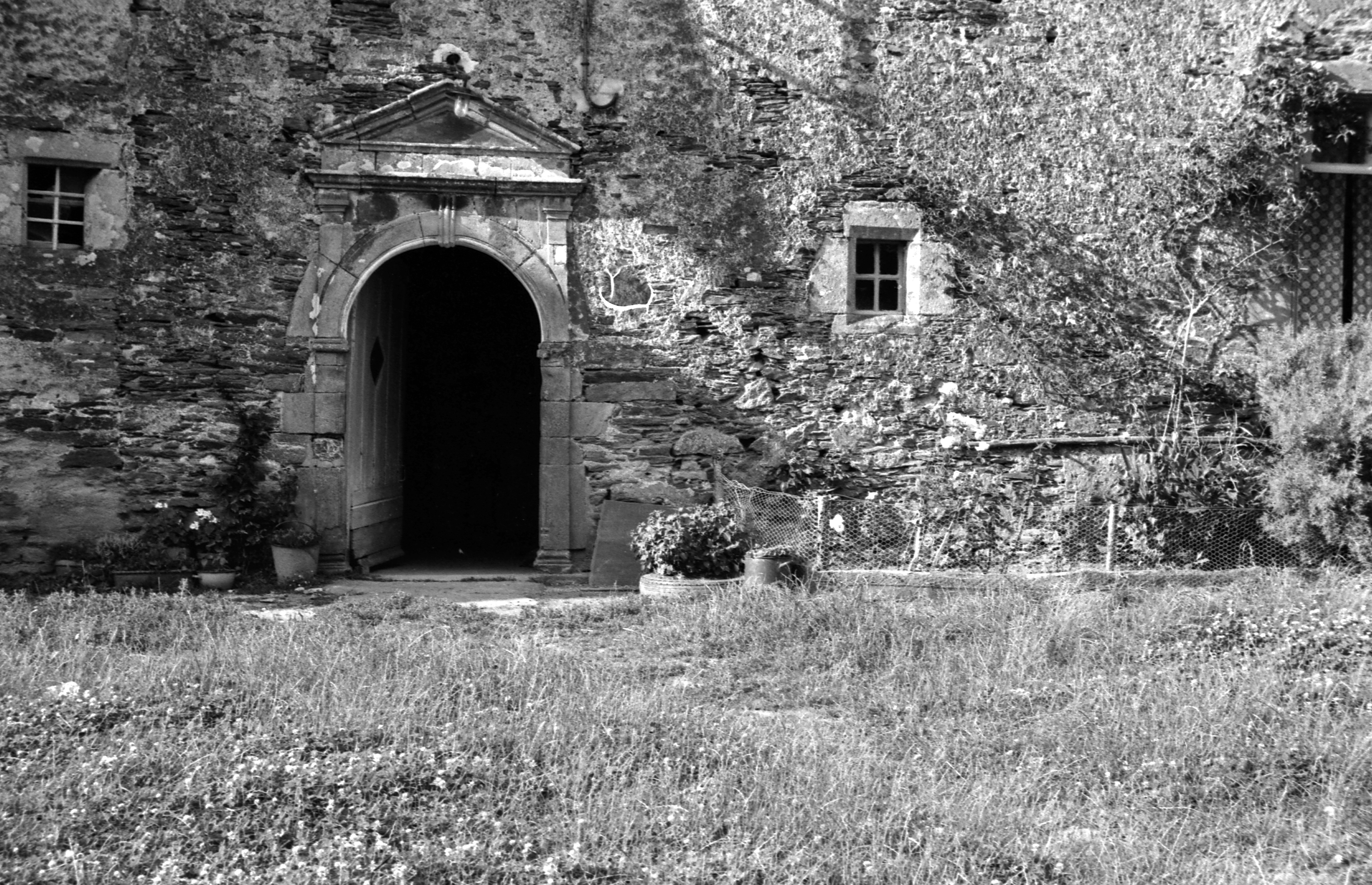 Manoir, logis, élévation sud, partie centrale : la porte (état en 1969)Immatriculation