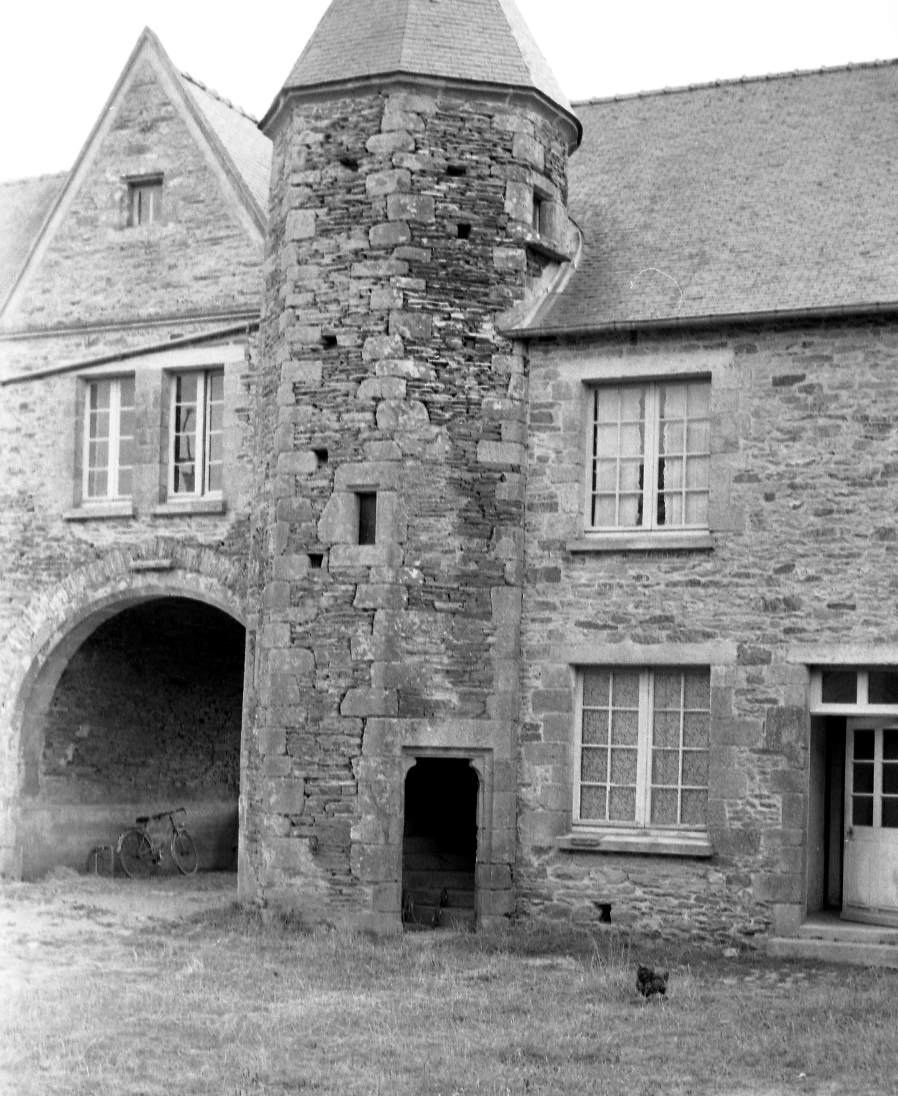 Manoir, aile est, élévation ouest : la tour d'escalier (état en 1969)Immatriculation