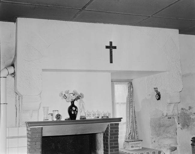 Manoir, logis, rez-de-chaussée, aile sud : la cheminée de la cuisine (état en 1989)Immatriculation