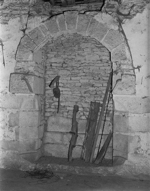 Manoir, logis, étage, aile nord : cheminée sur mur gouttereau ouest de la salle (état en 1989)Immatriculation