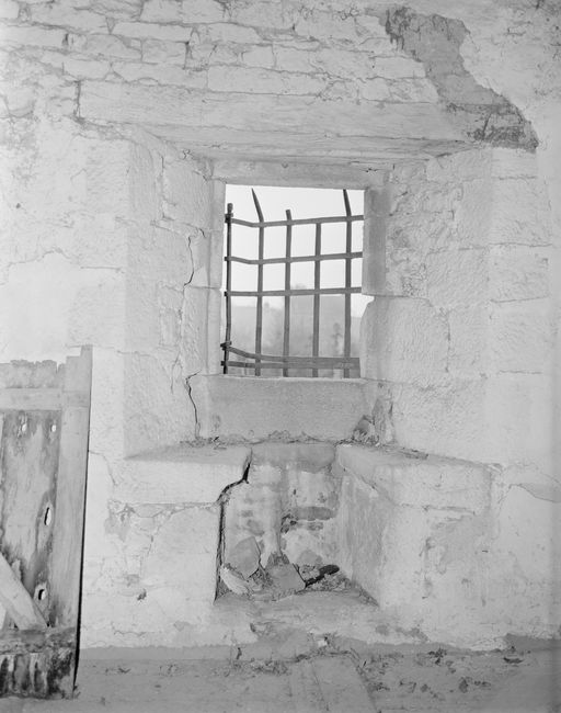 Manoir, logis, étage, aile ouest : fenêtre à coussièges au sud (état en 1989)Immatriculation