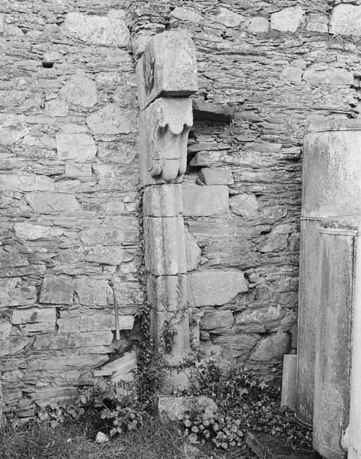 Manoir, logis, aile en retour au nord, aujourd'hui détruite : jambage de cheminée (état en 1989)Immatriculation
