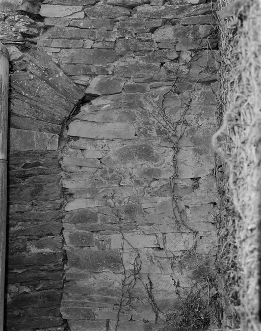 Manoir, logis, aile en retour au nord, aujourd'hui détruite : porte murée donnant sur les anciennes latrines (état en 1989)Immatriculation
