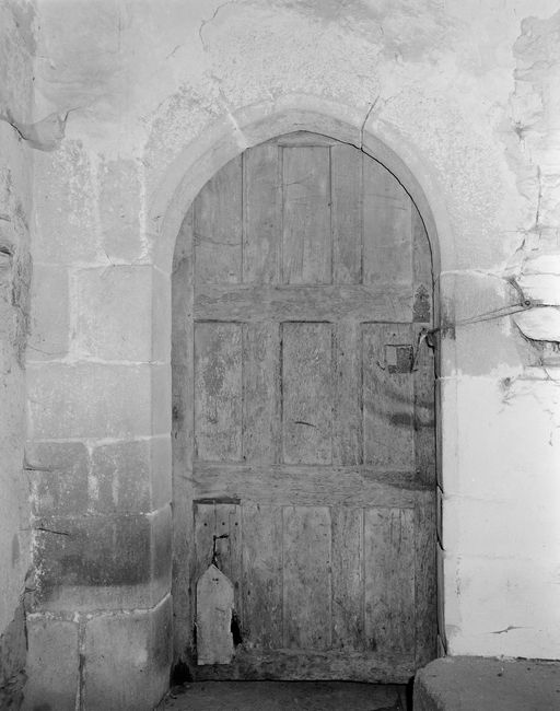 Manoir, logis, rez-de-chaussée : porte donnant sur l'escalier (état en 1989)Immatriculation