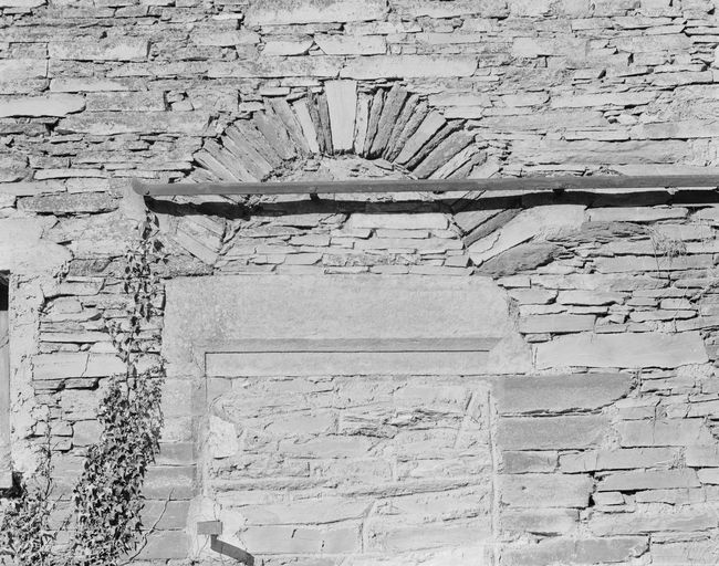 Manoir, dépendances, élévation est : porte en remploi, bouchée (état en 1989)Immatriculation