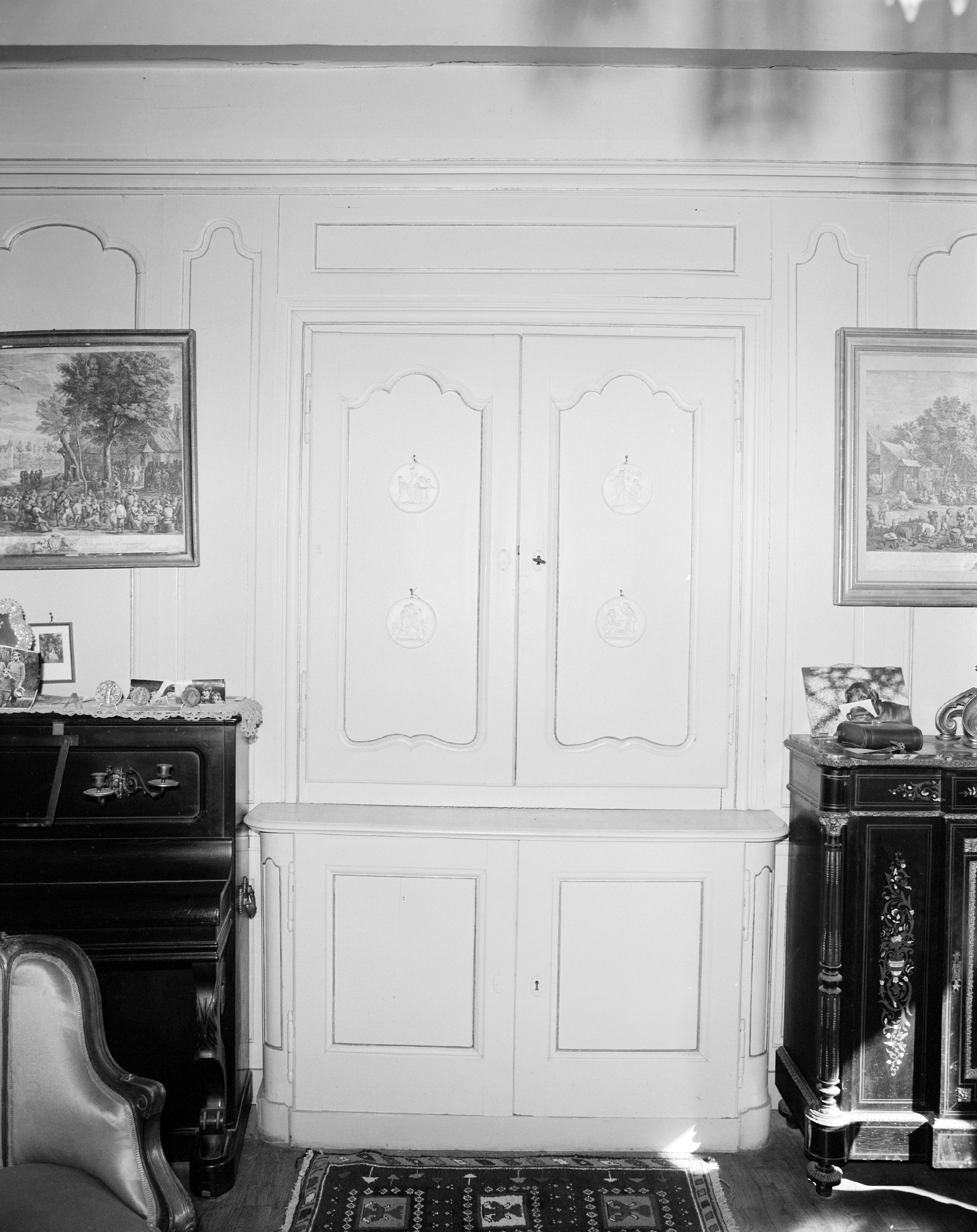 Salon lambrissé, meuble d'attache central, état avant travauxImmatriculation