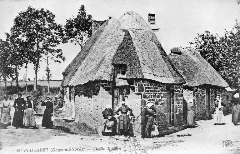 Plouaret : maison couverte en chaume, carte postale ancienneImmatriculation