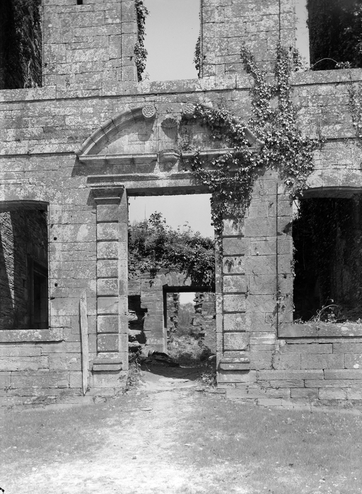 Logis abbatial, façade ouest, détail : porte du corps central (état en 1977).Immatriculation