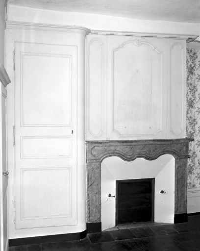 Logis, étage, pièce centrale 1, cheminée et lambris (état en 1990)Immatriculation