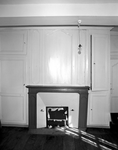Logis, étage, pièce centrale 2, cheminée et lambris (état en 1990)Immatriculation