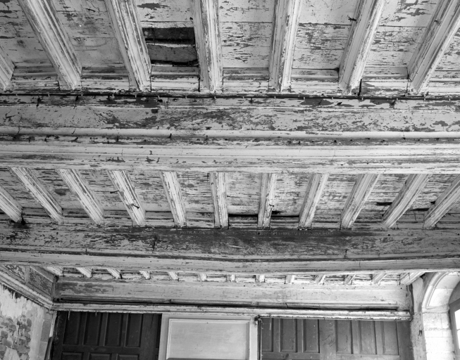 Logis, rez-de-chaussée, salle ouest, plafond, vue générale (état en 1990)Immatriculation