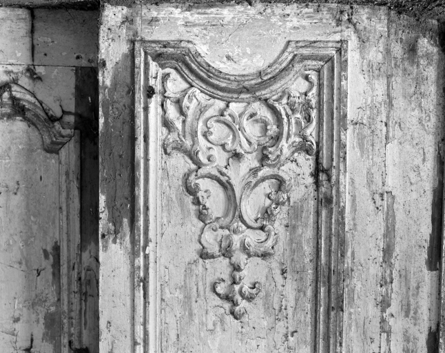 Logis, rez-de-chaussée, salle ouest, détail du lambris (état en 1990)Immatriculation