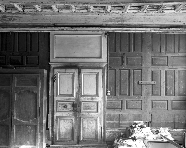 Logis, rez-de-chaussée, salle ouest, cloison (état en 1990)Immatriculation