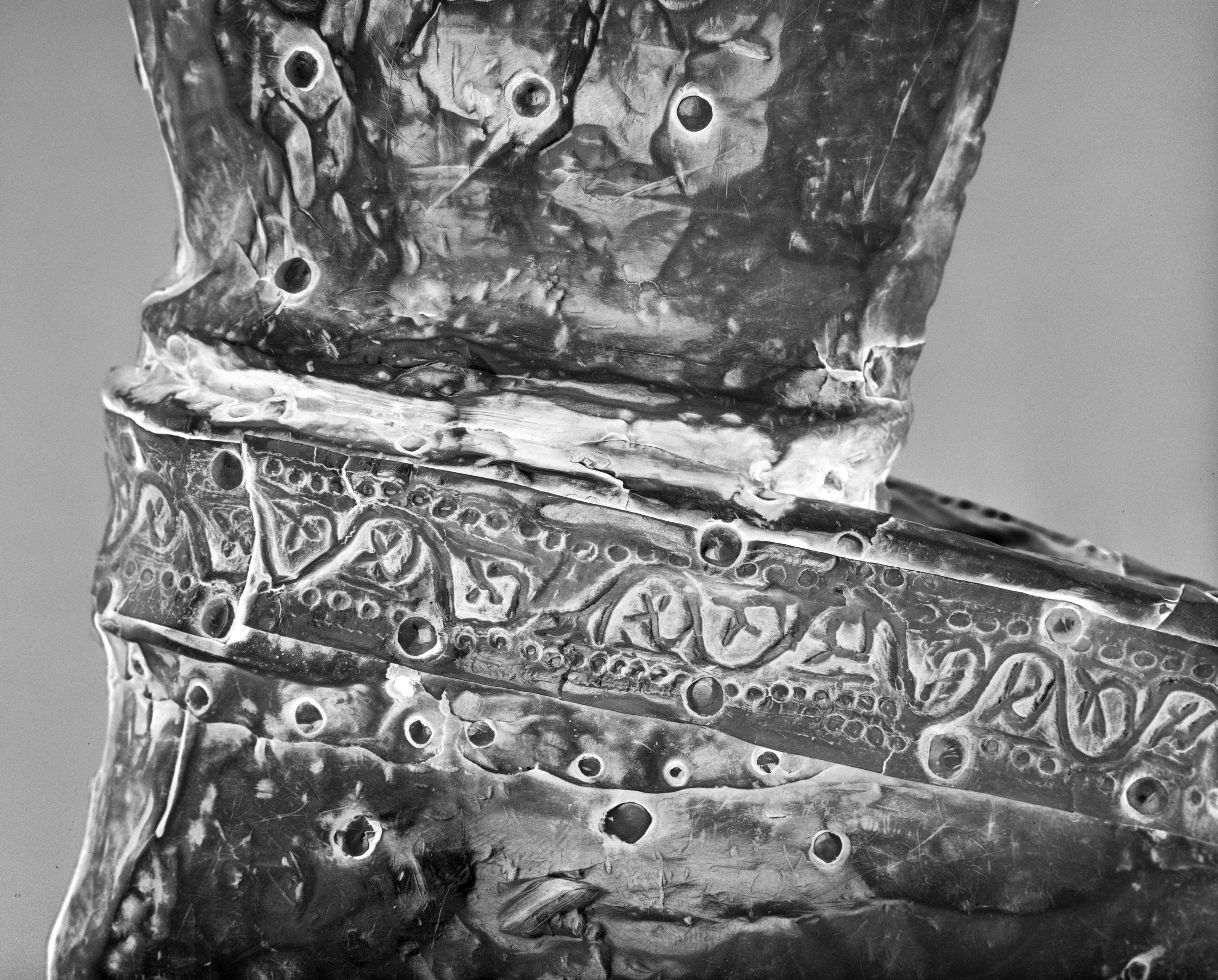 Bras-reliquaire, face intérieure : frise sur la bordure de la manche (état en 1990)Immatriculation