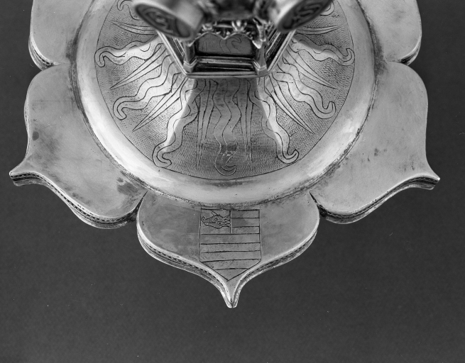 Eglise paroissiale Saint-Trémeur : calice et patène, calice, détail des armoiries sur le piedImmatriculation