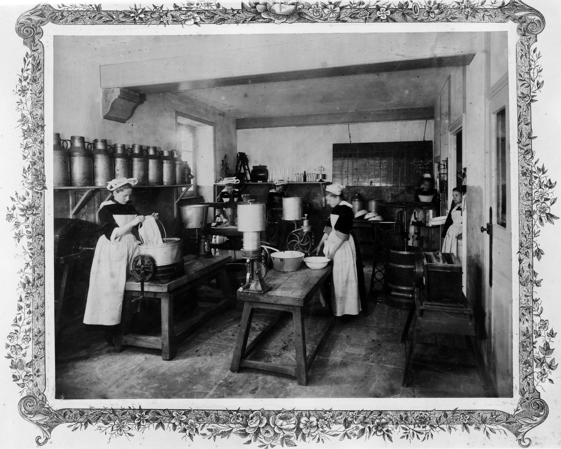 Ecole de laiterie, élèves travaillant dans la fromagerie (album de photographies anciennes de l'établissement)Immatriculation