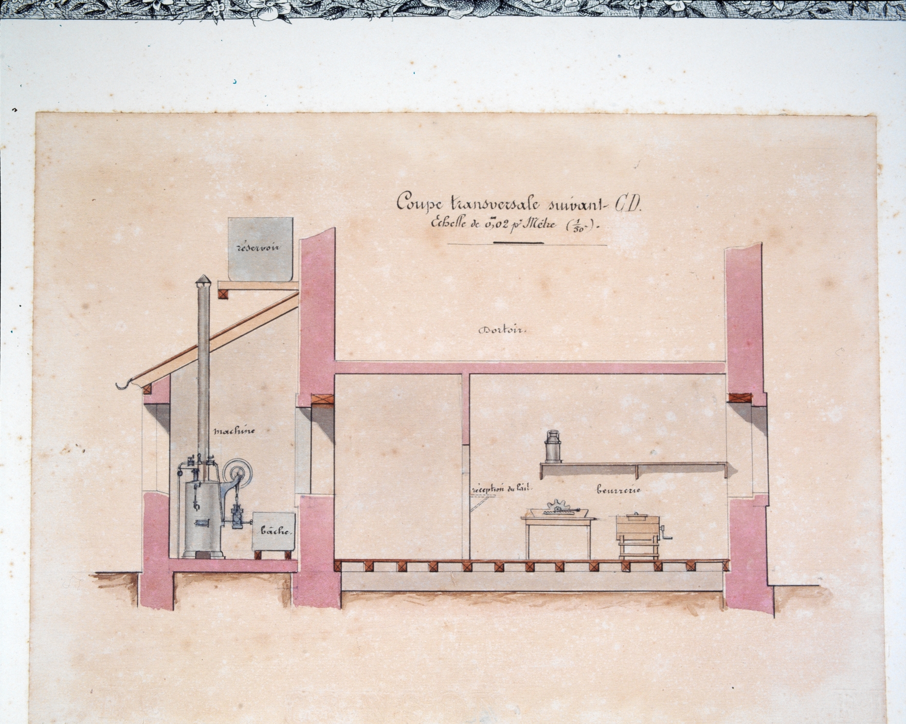 Ecole de laiterie, coupe tranversale du corps de logis (album de photographies anciennes de l'établissement)Immatriculation