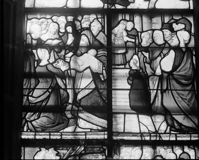 Verrière (verrière historiée) : Enfance du Christ, Vie de la Vierge (baie 3),