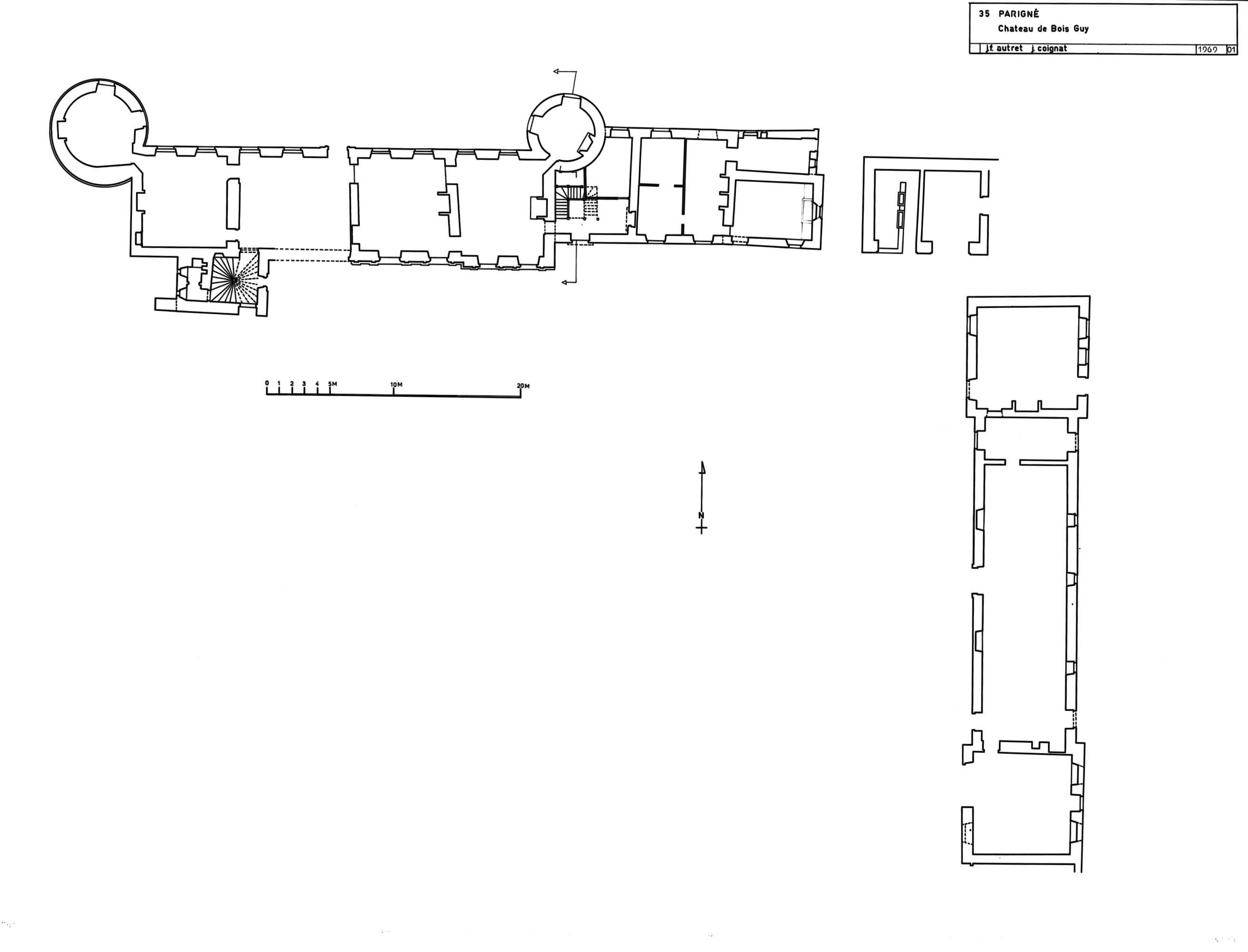 Parigné - château du Bois Guy : plan du rez-de-chaussée. Dessin.