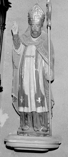 A gauche de ce retable Nord, vue générale de la statue d'évêque bénissant.Immatriculation