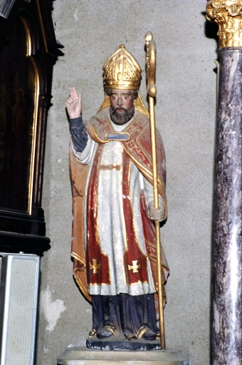 A gauche de ce retable Nord, vue générale de la statue d'évêque bénissant.Immatriculation