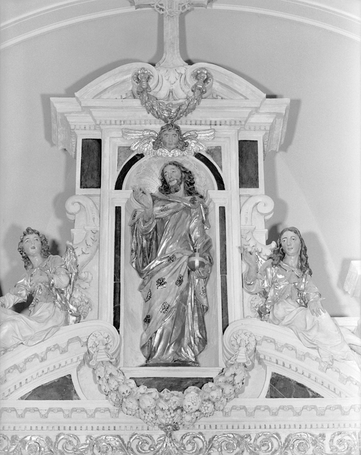 Vue générale de la statue du Christ triomphant (niche supérieure).Immatriculation