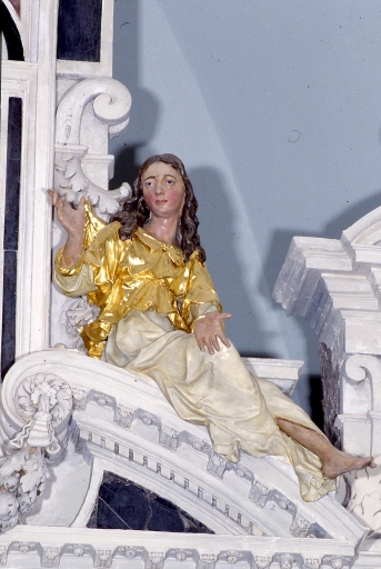 Détail de la tête de l'ange assis n°2.Immatriculation