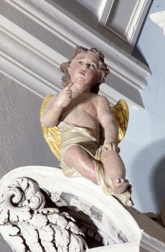 Détail de la tête de l'ange assis n°3.Immatriculation