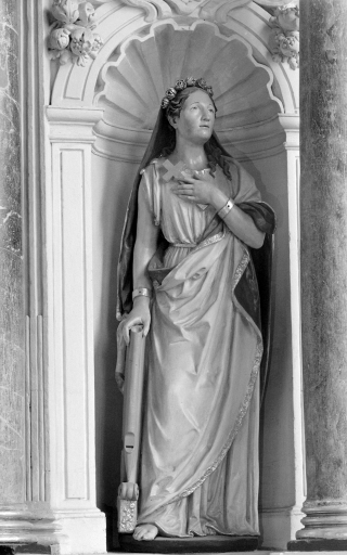 Détail de la statue de Sainte Cécile à gauche du retable Sud.Immatriculation