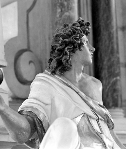 Détail de la tête de l'ange de gauche du maître autel.Immatriculation