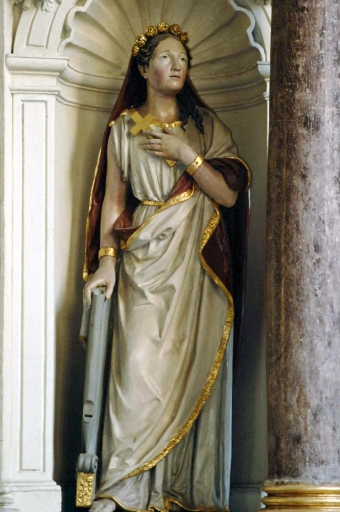 Détail de la statue sainte Cécile à gauche.Immatriculation