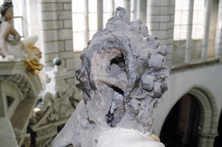 Détail de la tête de l'ange de gauche du maître autel.Immatriculation