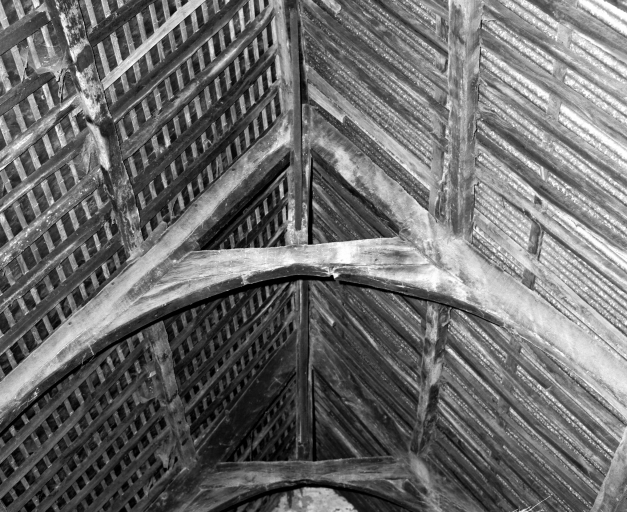 Salle basse, charpente : vue partielle en 1975Immatriculation