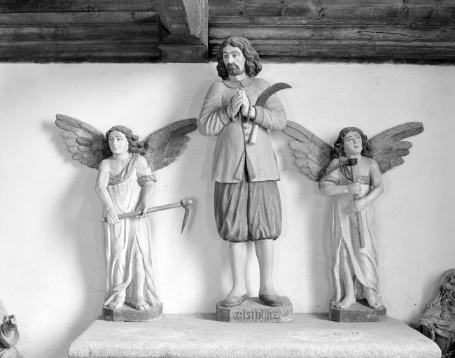 Le Vieux-Marché, les Sept Saints : chapelle, vue intérieure, statues de Saint Isidore et deux angesImmatriculation