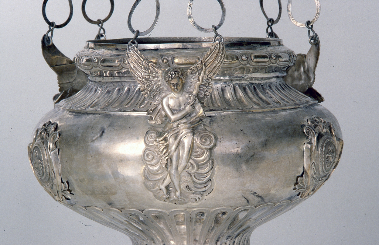 Détail d'un ange de la cuve principaleImmatriculation