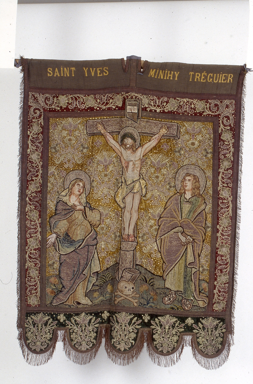 Bannière de procession Christ entre la Vierge et saint Jean, saint Pierre (Minihy-Tréguier),